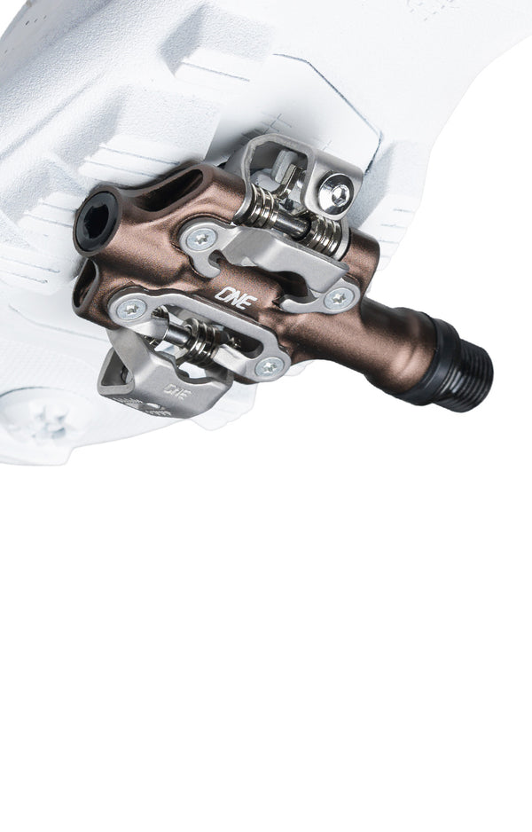 • Custom, Stainless Steel, SPD™ Compatible Binding offers a locked-in feel with no unwanted play, and works with OneUp's own cleats and Shimano SPD cleats.